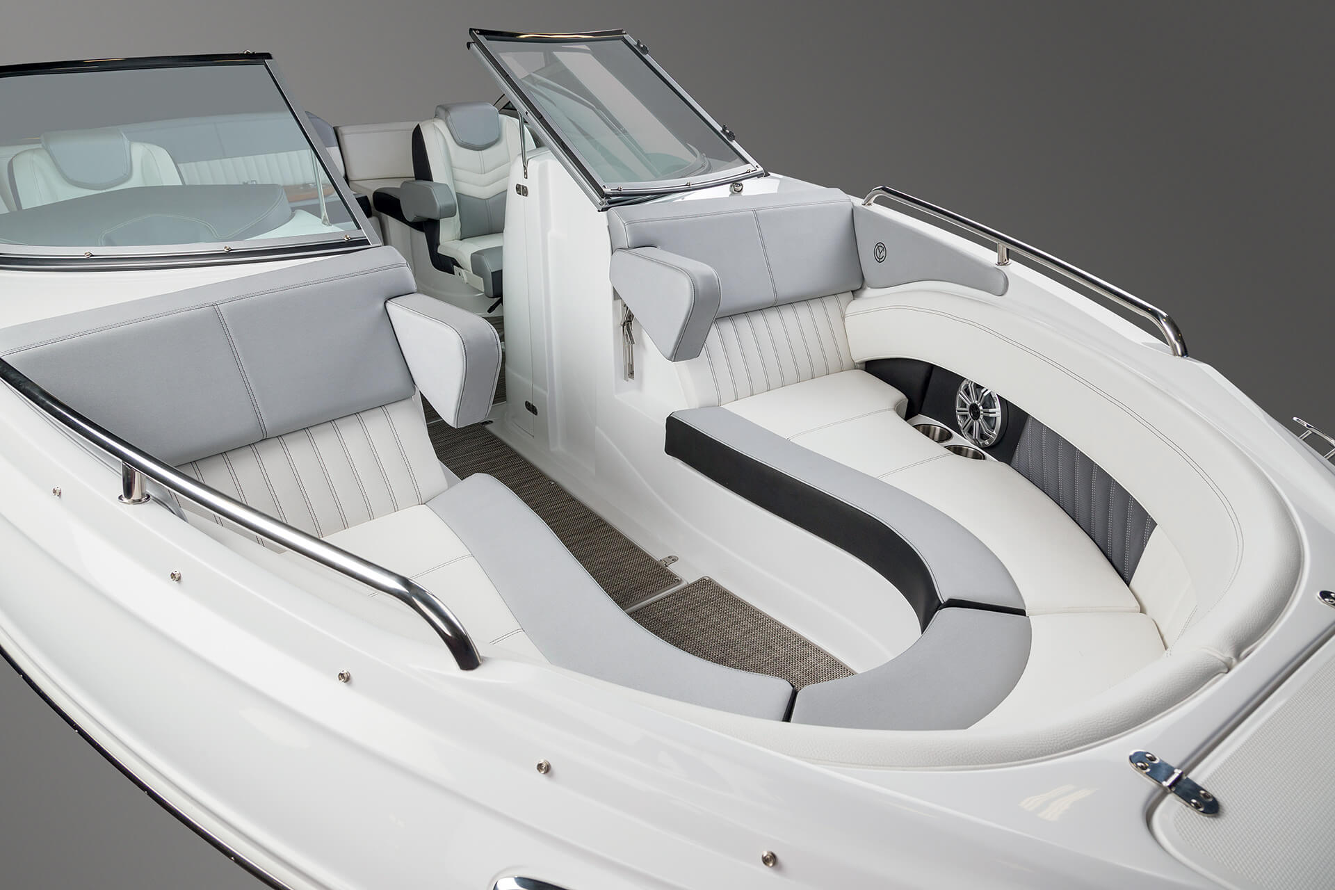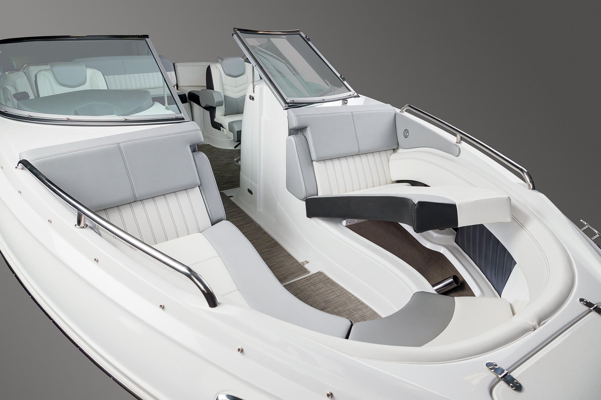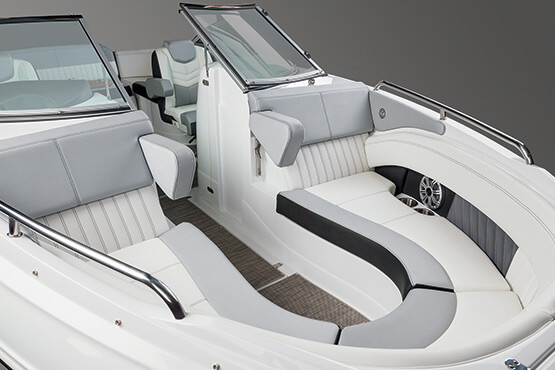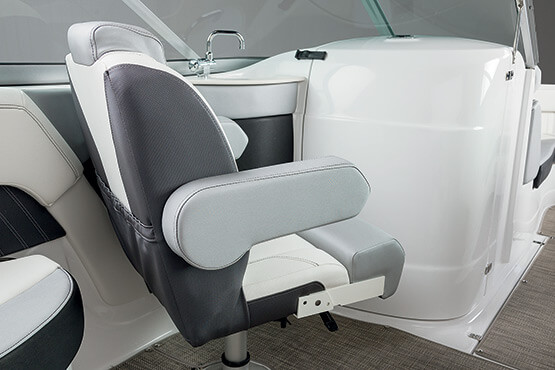 There are few things as exhilarating as watching an accomplished rider perform amazing tricks on a wakeboard. And the 238 Bow Rider’s designers performed some Herculean feats themselves to get so many amazing features into a boat of 23 feet. Including deep bow seating and convertible rear seating/sun pad, a walk-thru windshield and telescoping ladder, bow/cooler storage and an extended swim platform, stainless steel cup holders throughout and much much more. It’s more boat than has ever been engineered into 23 feet.