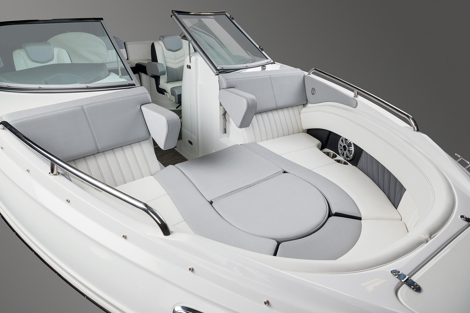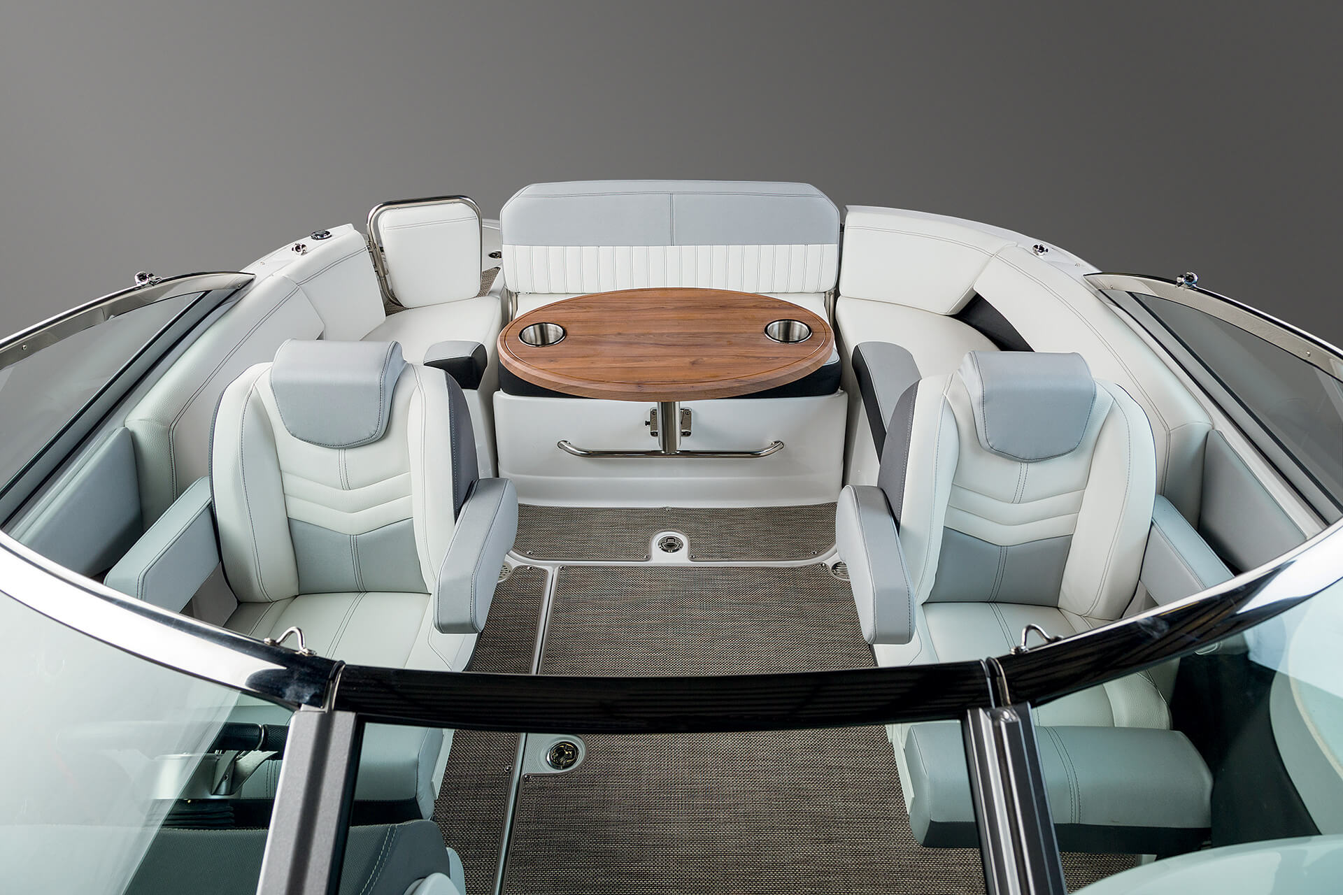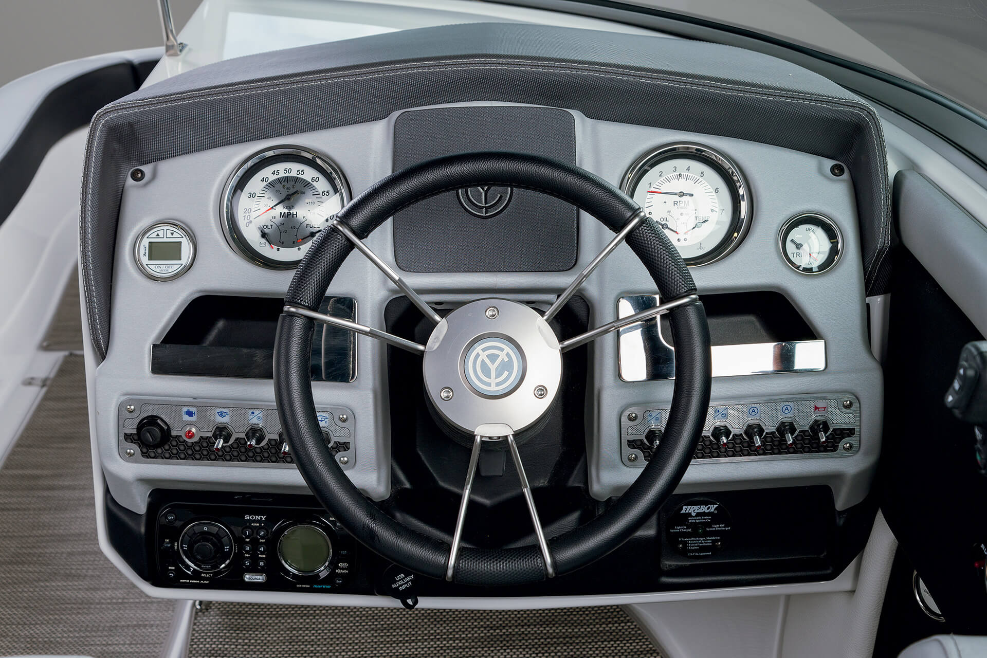 There are few things as exhilarating as watching an accomplished rider perform amazing tricks on a wakeboard. And the 238 Bow Rider’s designers performed some Herculean feats themselves to get so many amazing features into a boat of 23 feet. Including deep bow seating and convertible rear seating/sun pad, a walk-thru windshield and telescoping ladder, bow/cooler storage and an extended swim platform, stainless steel cup holders throughout and much much more. It’s more boat than has ever been engineered into 23 feet.