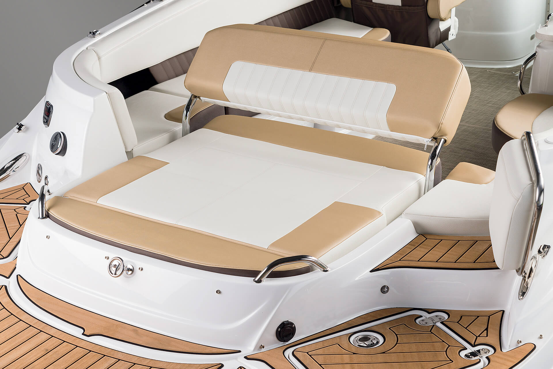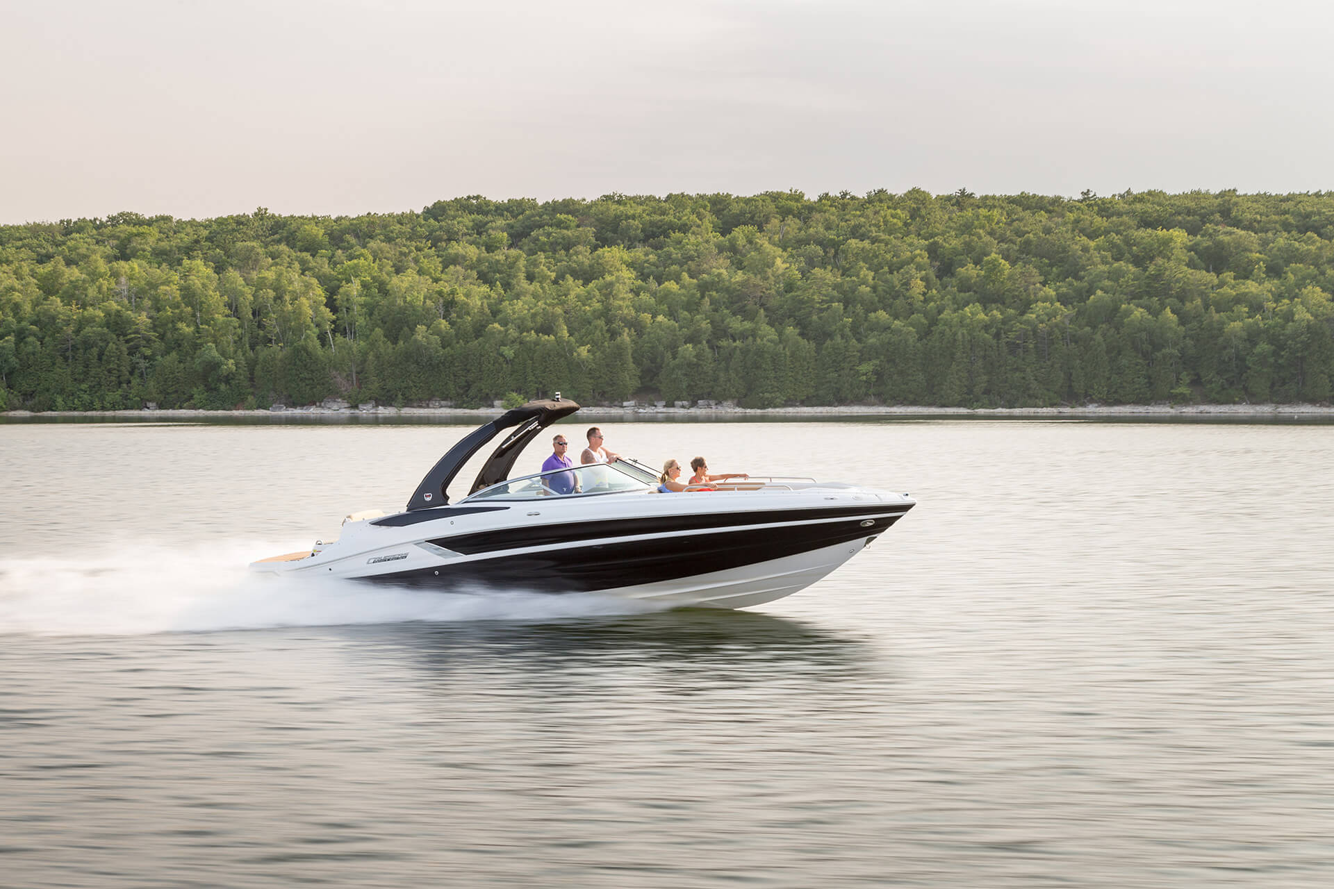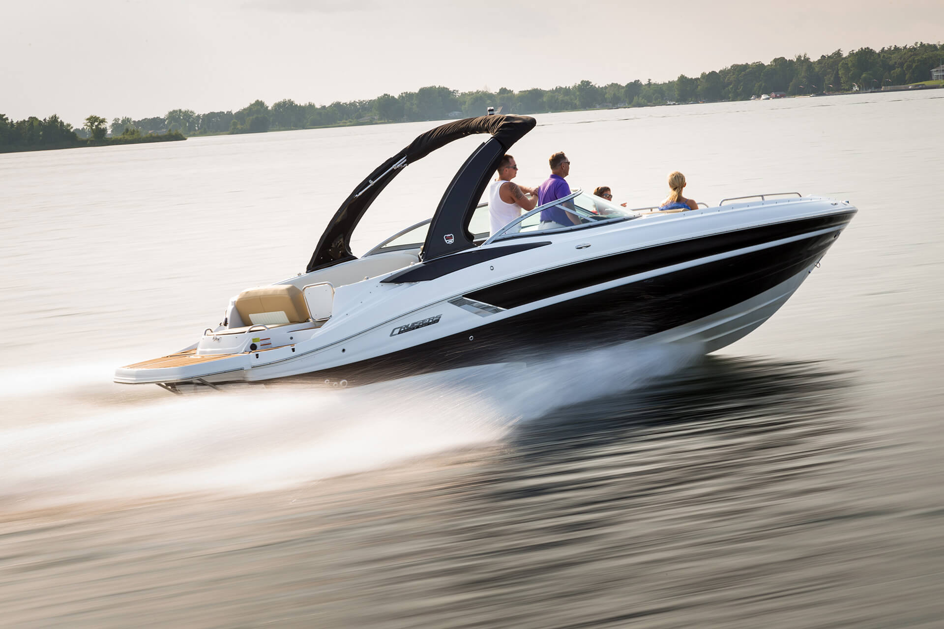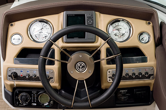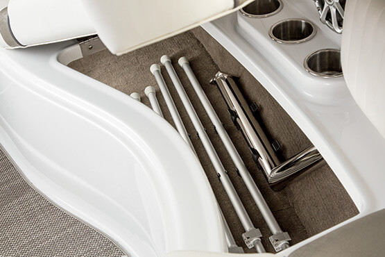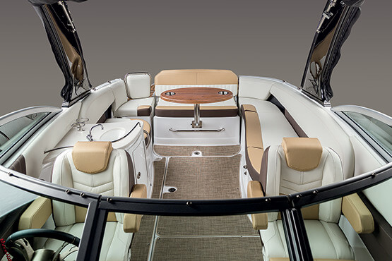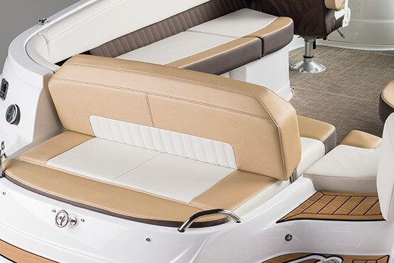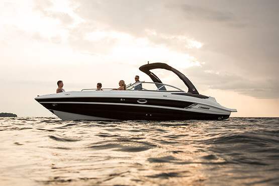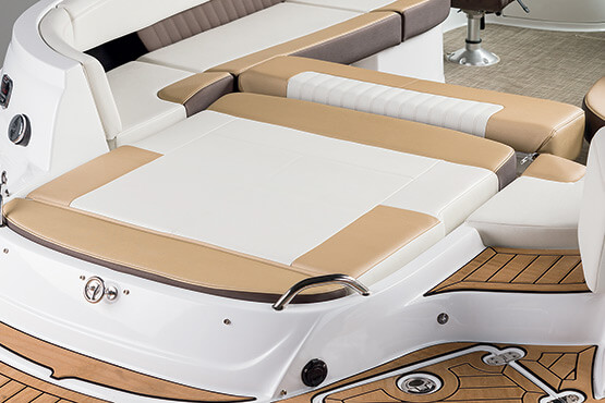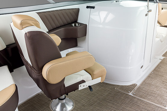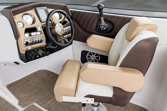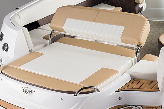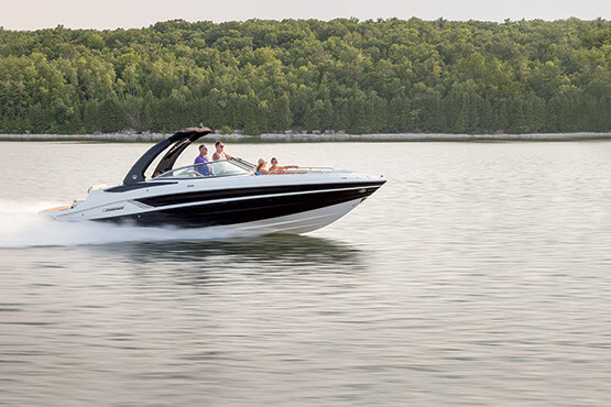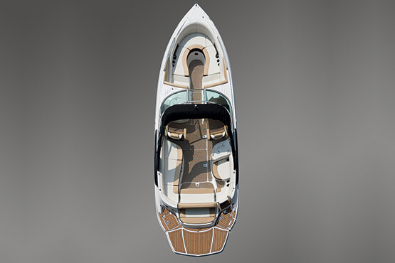 Our personal journeys are best measured in friends, not miles. And the magnificent 298 allows you to bring along all your friends and family in ultra-lux comfort. It features more spaciousness, more amenities and more performance. Plus, a sleek profile accented by the optional aerodynamic sport arch. The open bow seating area offers complete wraparound lounges, helm seats swivel to face the cockpit seating area, and it’s complete with a convertible, rear-facing sun pad. Everyone, prepare to leave the real world far behind.