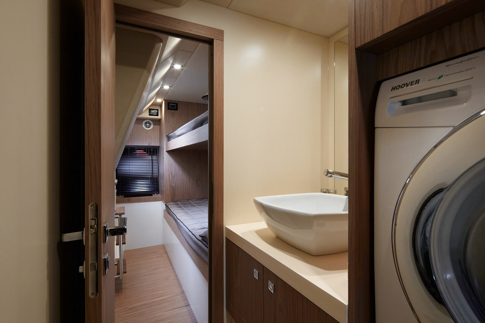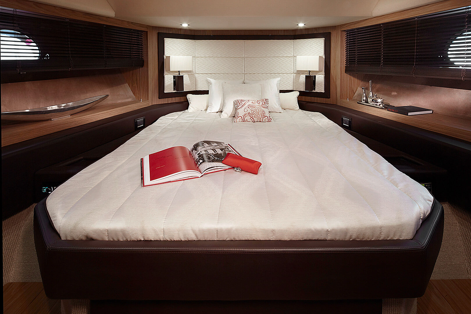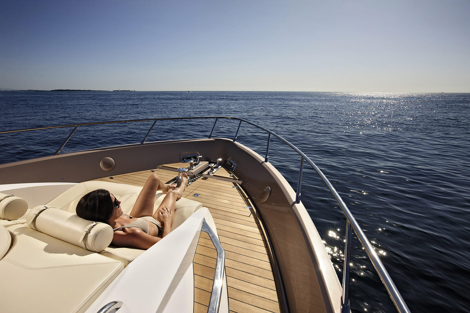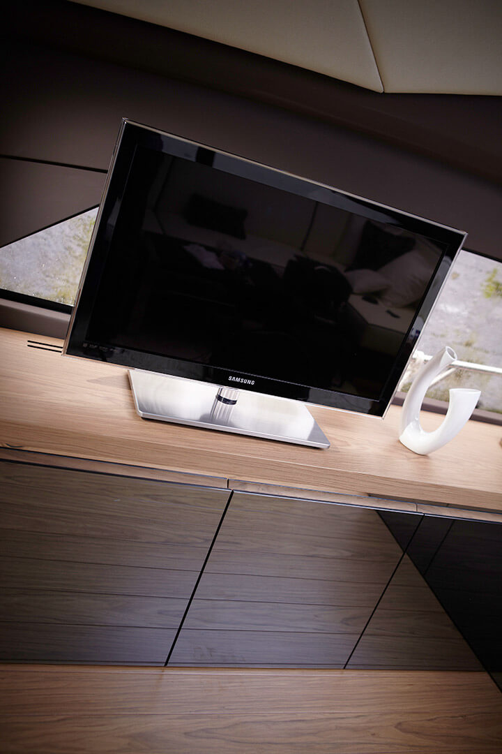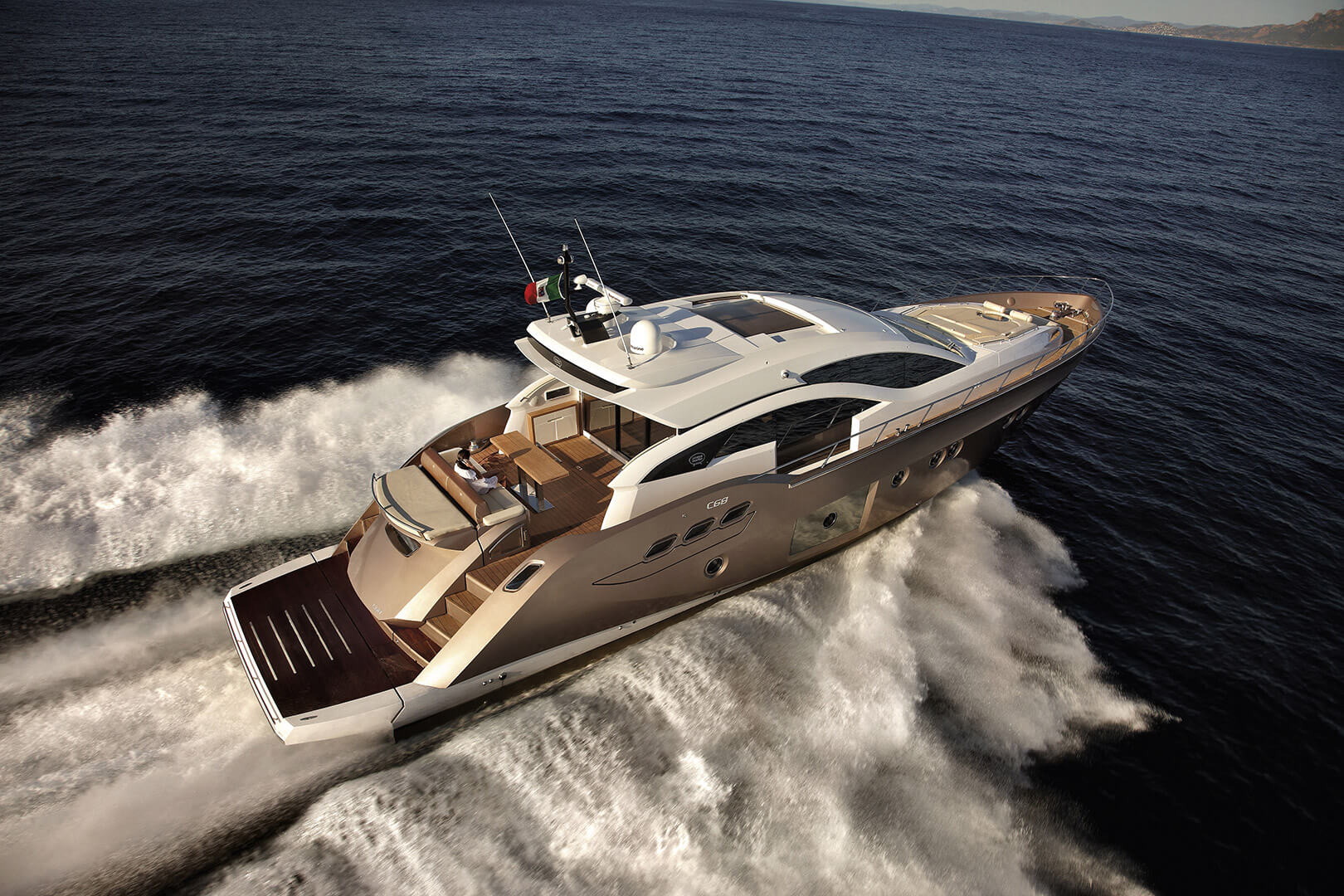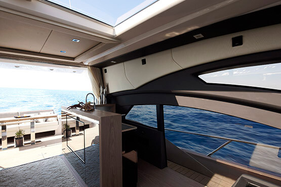 Elegance and power are its distinguishing features. The atmosphere of the interior, characterized by a new dimension of livability, has been conceived to evoke a domestic setting without sacrificing a nautical feel. Sailing and design come together under its components that evoke everyday life, such as the kitchen and the beautifully lit wine cellar. Light is an element essential to the whole boat, and in particular to the master cabin, a real strongpoint of the C68.