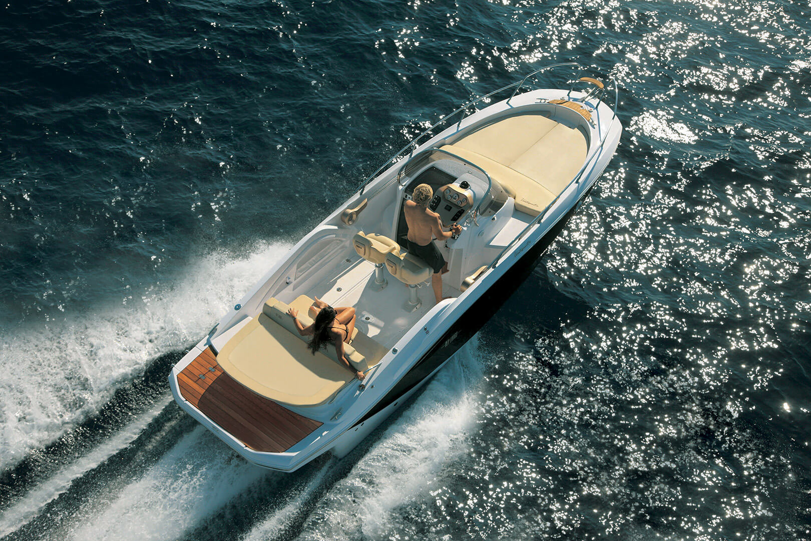 The Key largo 24 IB offers extreme comfort in only 7 meters. It’s deck has been carefully studied to offer a remarkable and tremendous space harmony, definitely innovative for a vessel of this size, as for example: the versatility of the cockpit where the comfortable stern cockpit sofa can turn into a relaxing sunbathing area. The spacious bow area offering a huge sunpad together with chaise longue, glass holder and plenty of storage for fenders and the big and folding bimini top, designed to be practical, and friendly use, easily storage. Lowerdeck, KL 24 IB offers a charming cabin with bar unit ready to accommodate 43l refrigerator, queen size bed and predisposition for flush wc. The KL 24 IB represents the perfect boats for those who want to enjoy every comfort without sacrificing design.