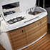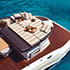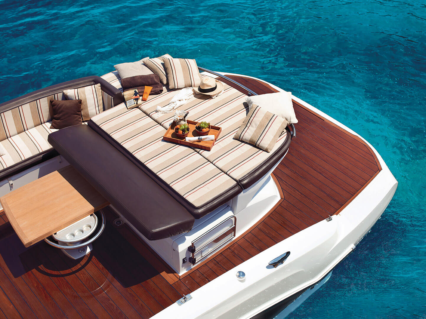For its inboard version of the KL34, SESSA has created an ergonomic design where life onboard is centred around the stern. The KL 34 inboard, ifact, offers: an exceptionally wide bathing deck covering the engines for safe swimming with the children, a sun deck that can be further extended by folding down the back of the sofa, a large cockpit with a central fold out table and a pleasant cocktail area with a teak kitchen unit complete with sink, fridge and ice-maker.