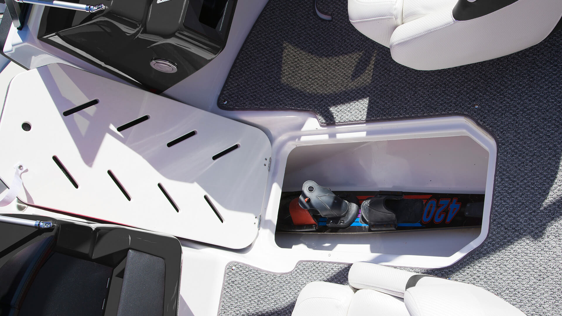This 18-foot open-bow sport platform accommodates the entire family with ease. Enjoy spacious seating and thoughtful details like a walk-through windshield and angled, deep-reach swim ladder.