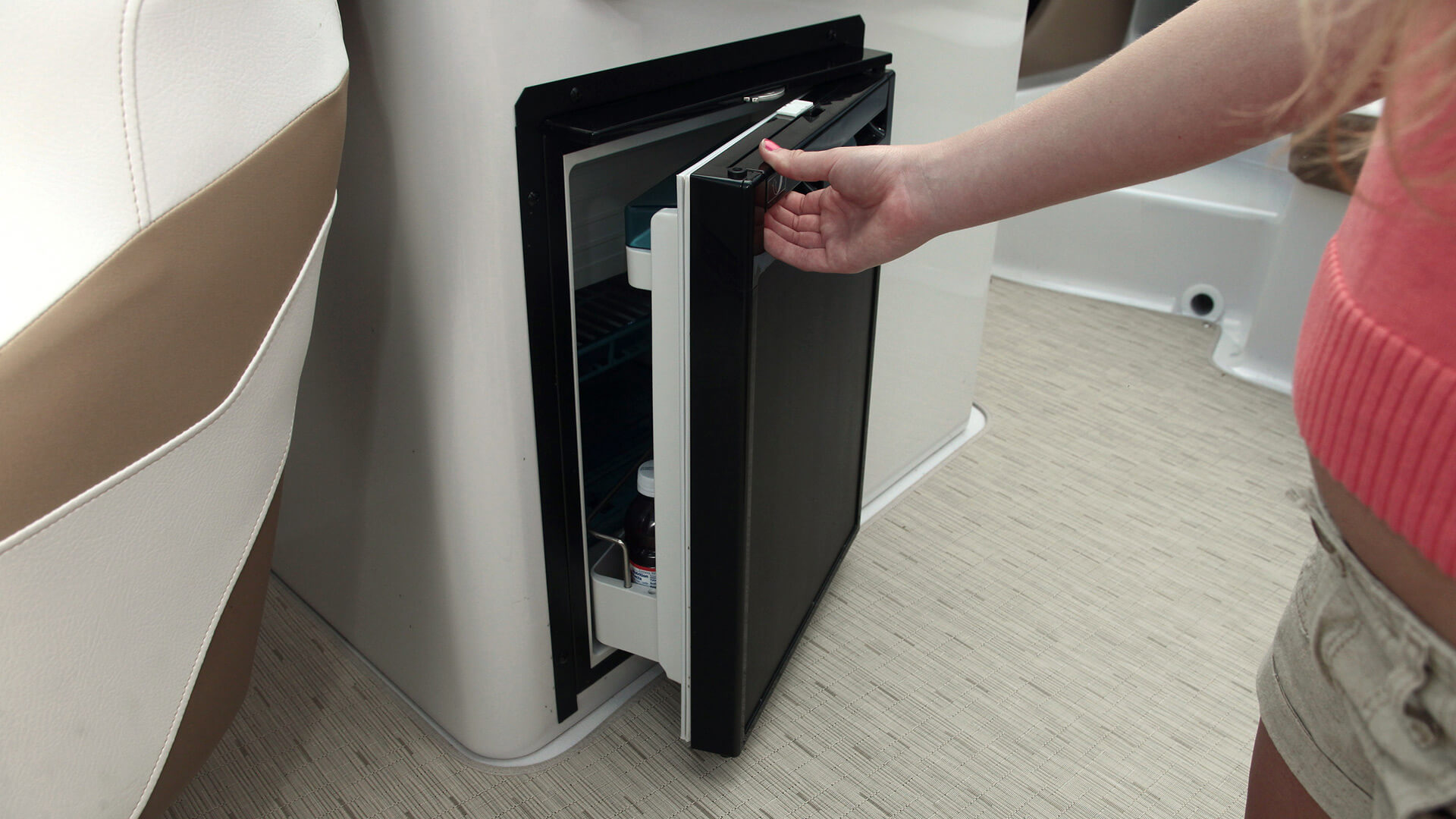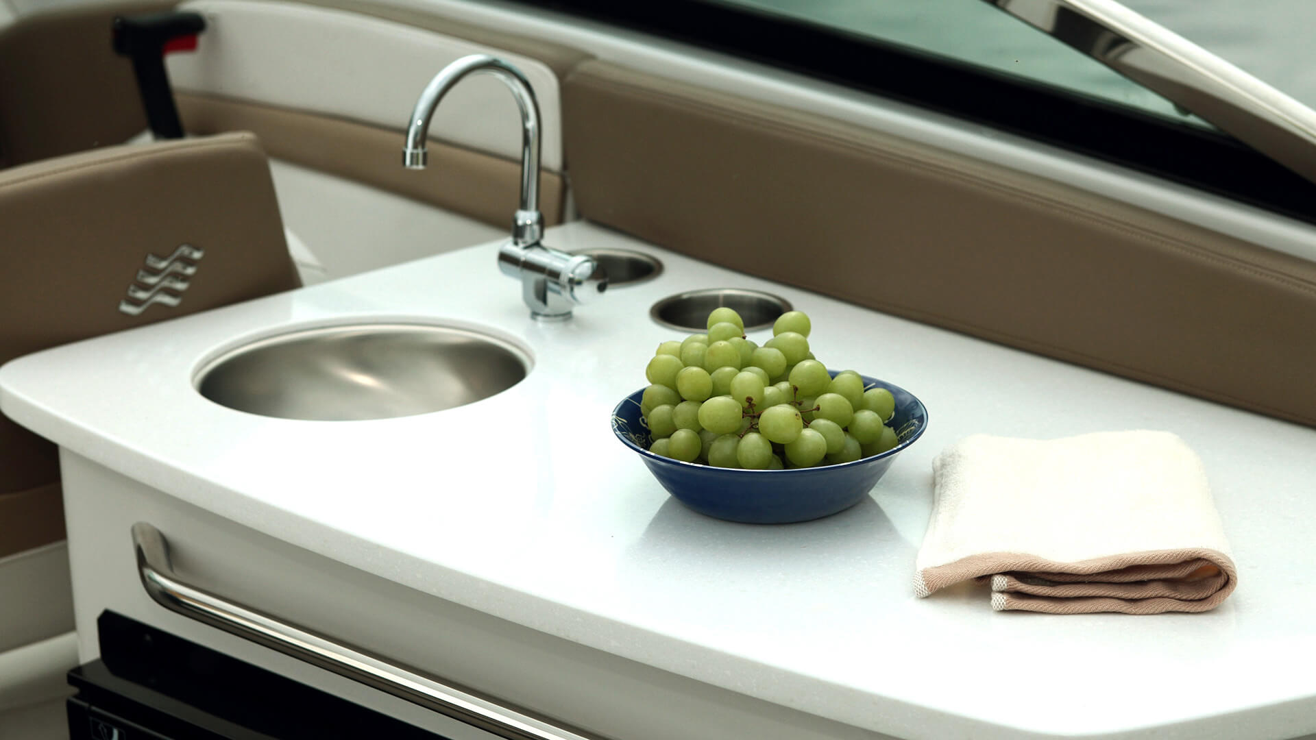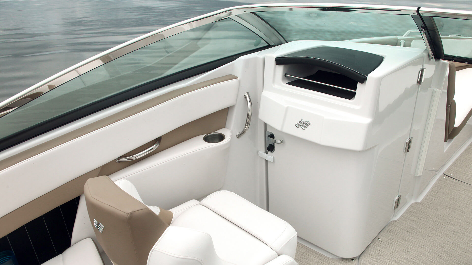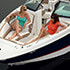 You'll command a fleet of admiring glances aboard this handsome 26-foot craft. Beautiful form meets beautiful function with chaise lounge bow-seating and a gorgeous top-stitched helm.