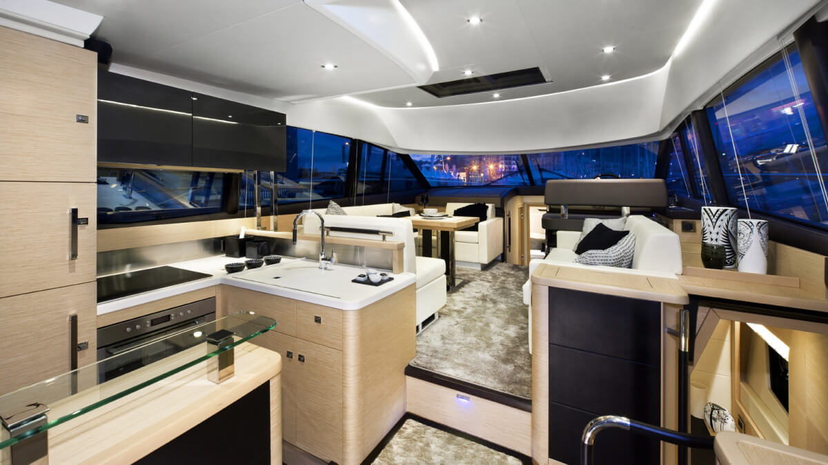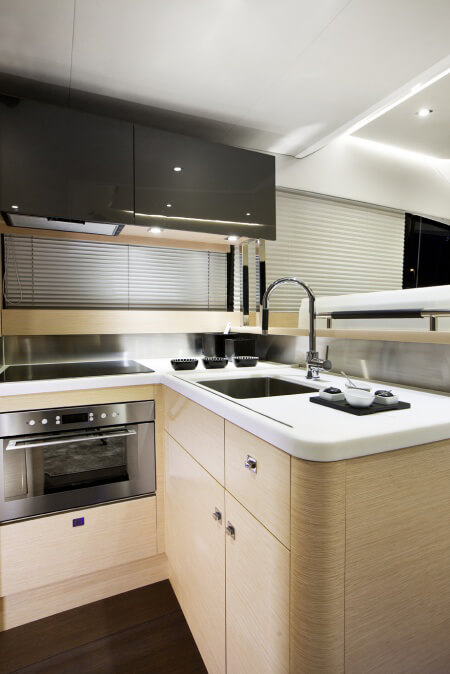 El estilo puro y dinámico de la Prestige 500 no se realiza prescindiendo de la calidad de vida a bordo.