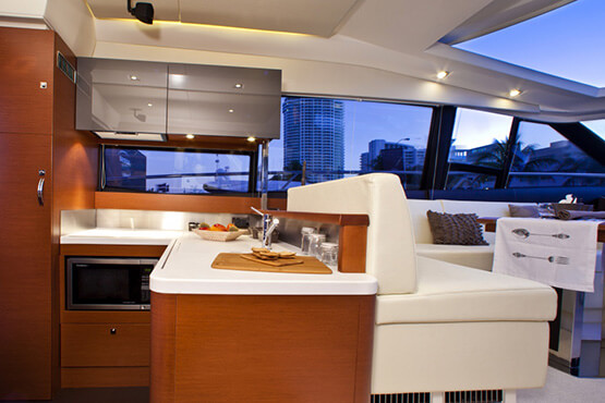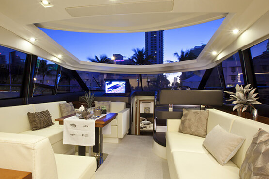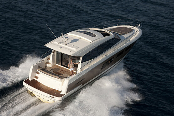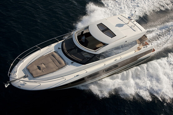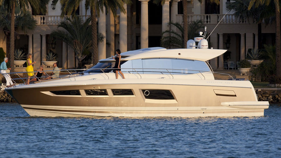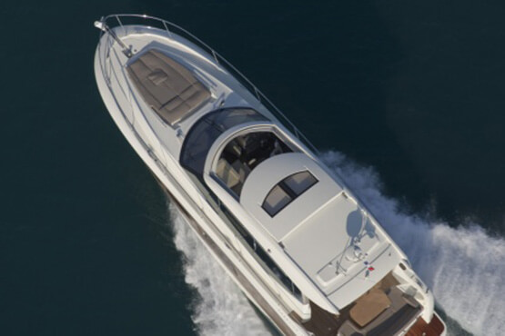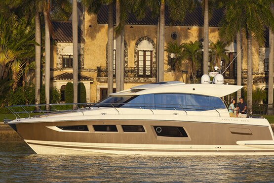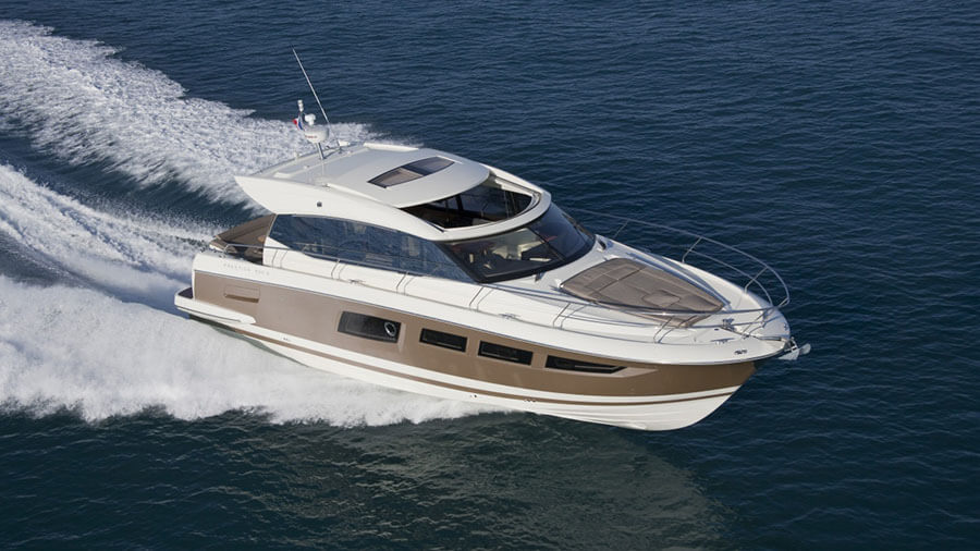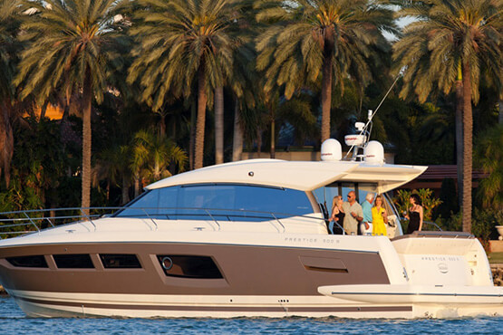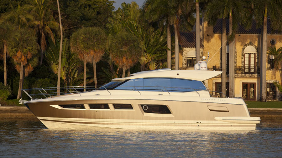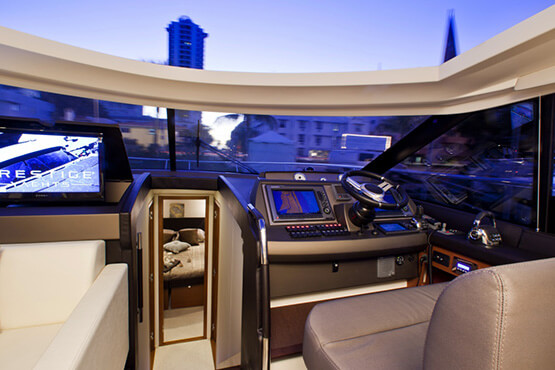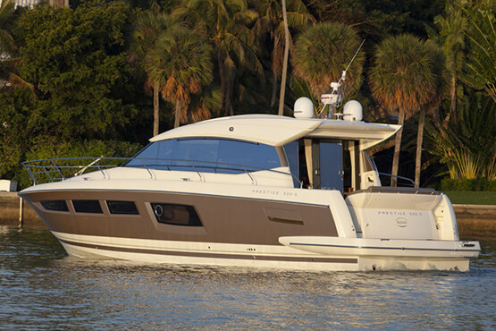 La nueva Prestige 500 S se inscribe exactamente en la filosofía del mundo Prestige: concepto “inteligible”, calidades marinas, estilo sobrio y elegante, muy grandes volúmenes habitables.