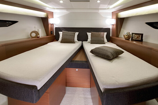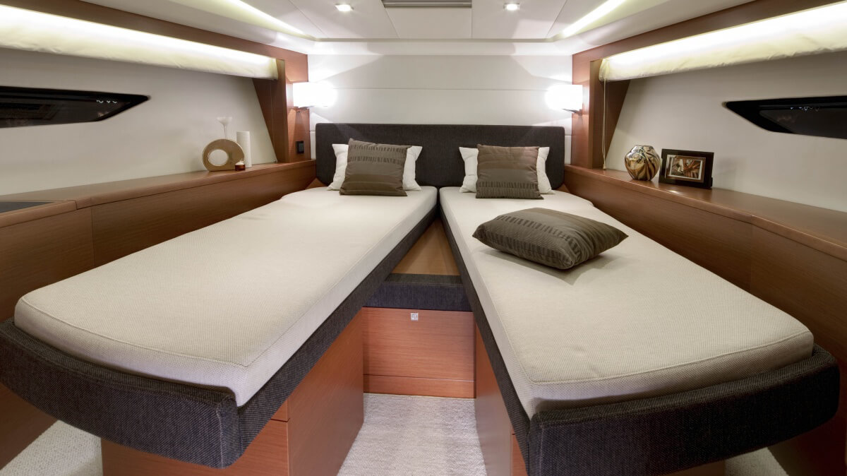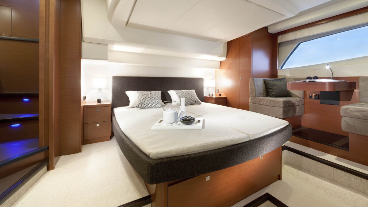 Como complemento, la Prestige 500 S presenta un interés muy particular al revelar un nuevo tipo de adaptaciones: el concepto “suite propietario” en un barco inferior a 50 pies.