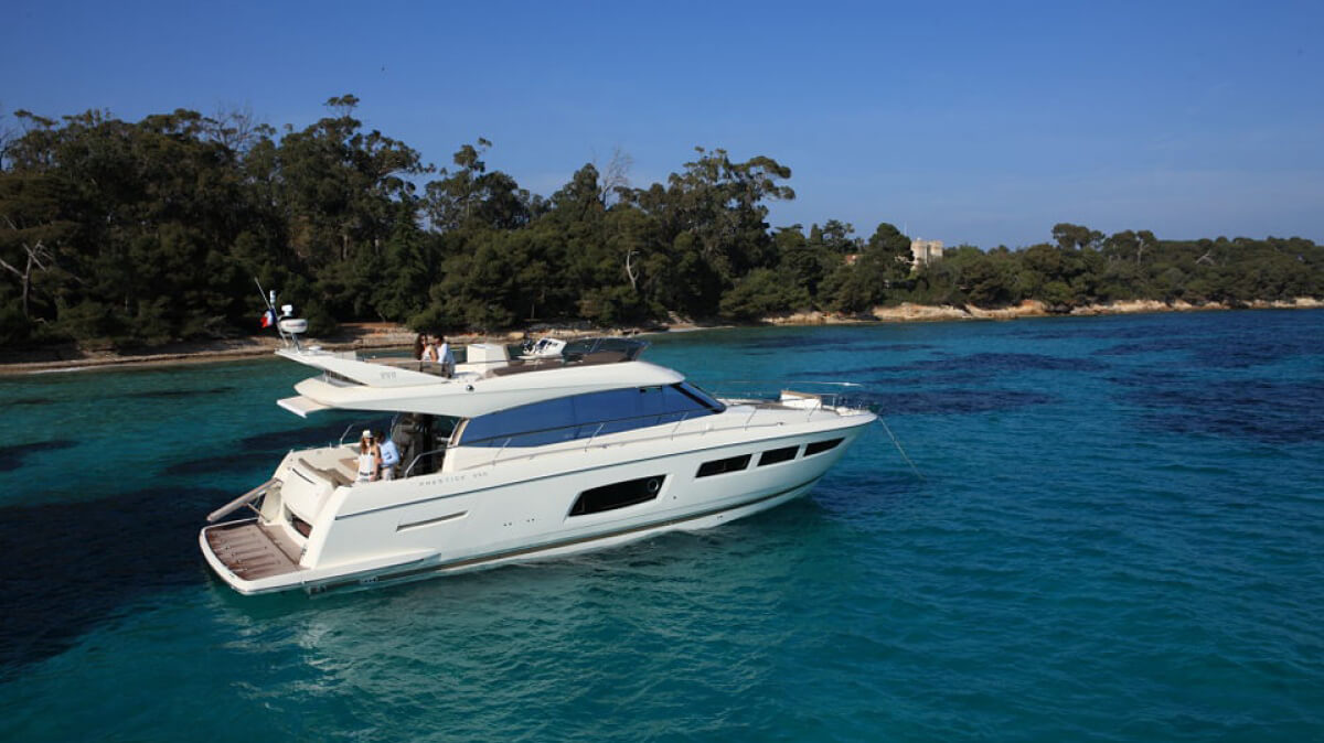 En la continuidad de la Prestige 500, el nuevo diseño de las Prestige fly bridge se basa en dos puntos fuertes, el equilibrio de las formas y una expresión general, afirmando potencia y seguridad.
