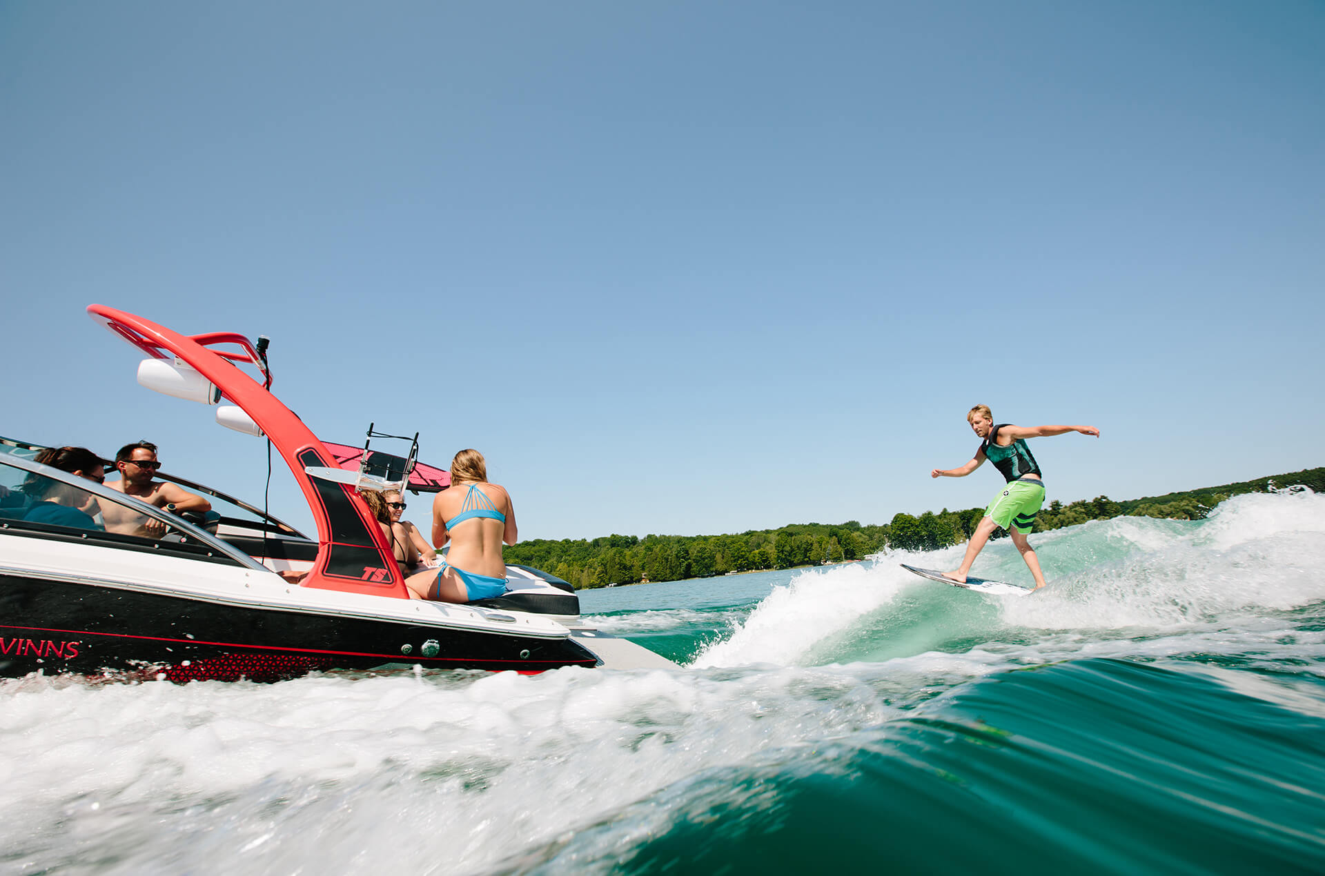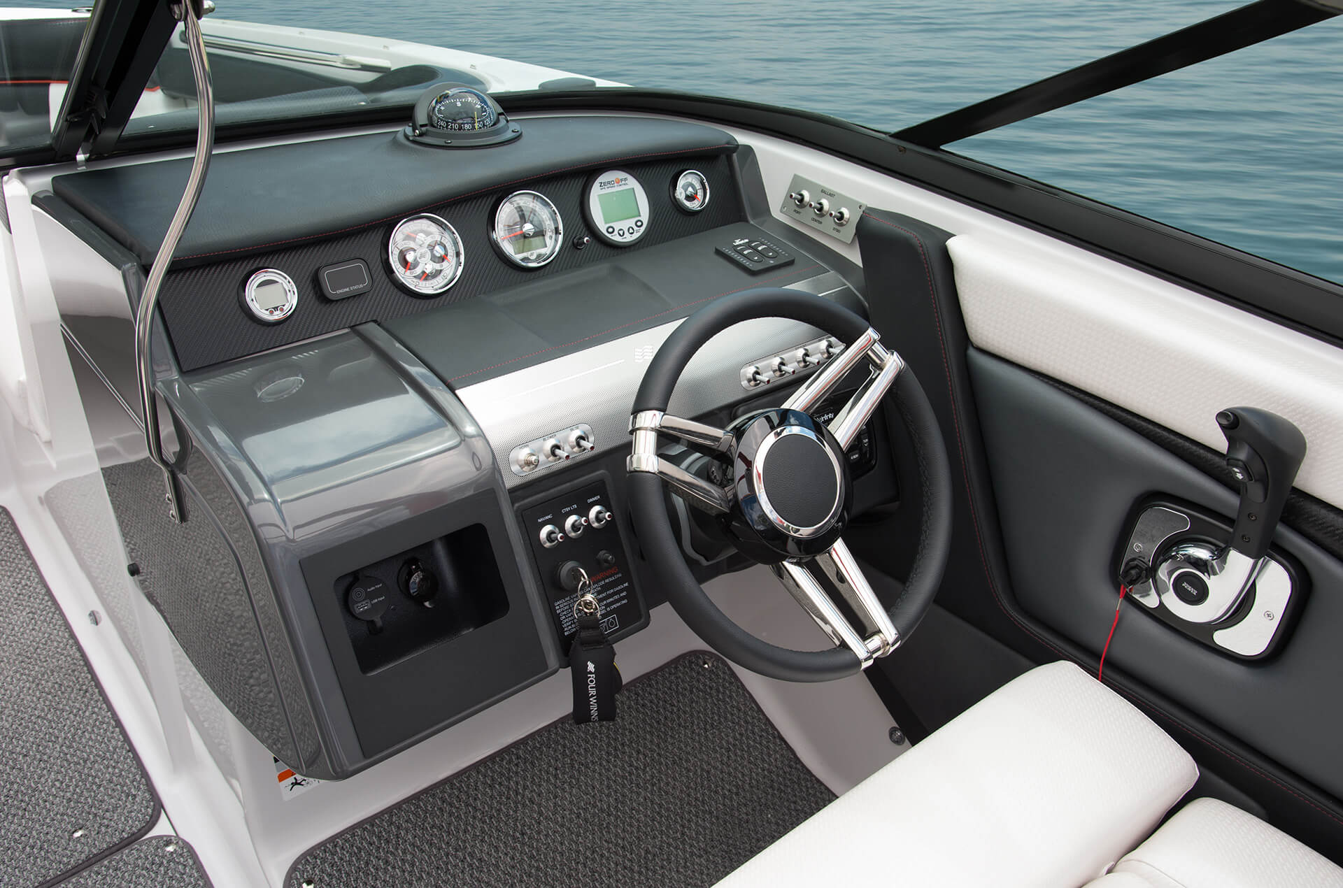 Sometimes to move forward, you've got to do a 180. The all-new Four Winns TS222, along with Volvo Penta's revolutionary Forward Drive system, achieves the ultimate in tow sports boating. With the quick-fill ballast system, the hull is placed deep into the water for the wake enhancement surf tabs to do their handy work. At the helm, controls provide the driver and wake surfer the ability to create their own fun on the water. A color-matched wake tower rounds out the package making the TS222 a no compromise alternative to inboard tow boats.