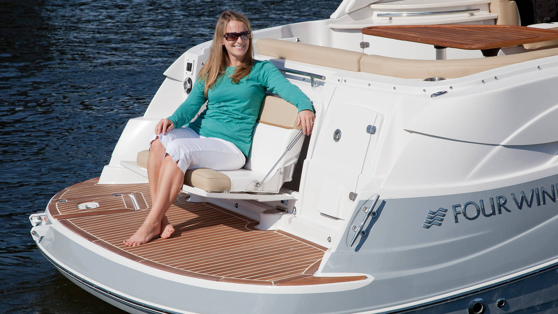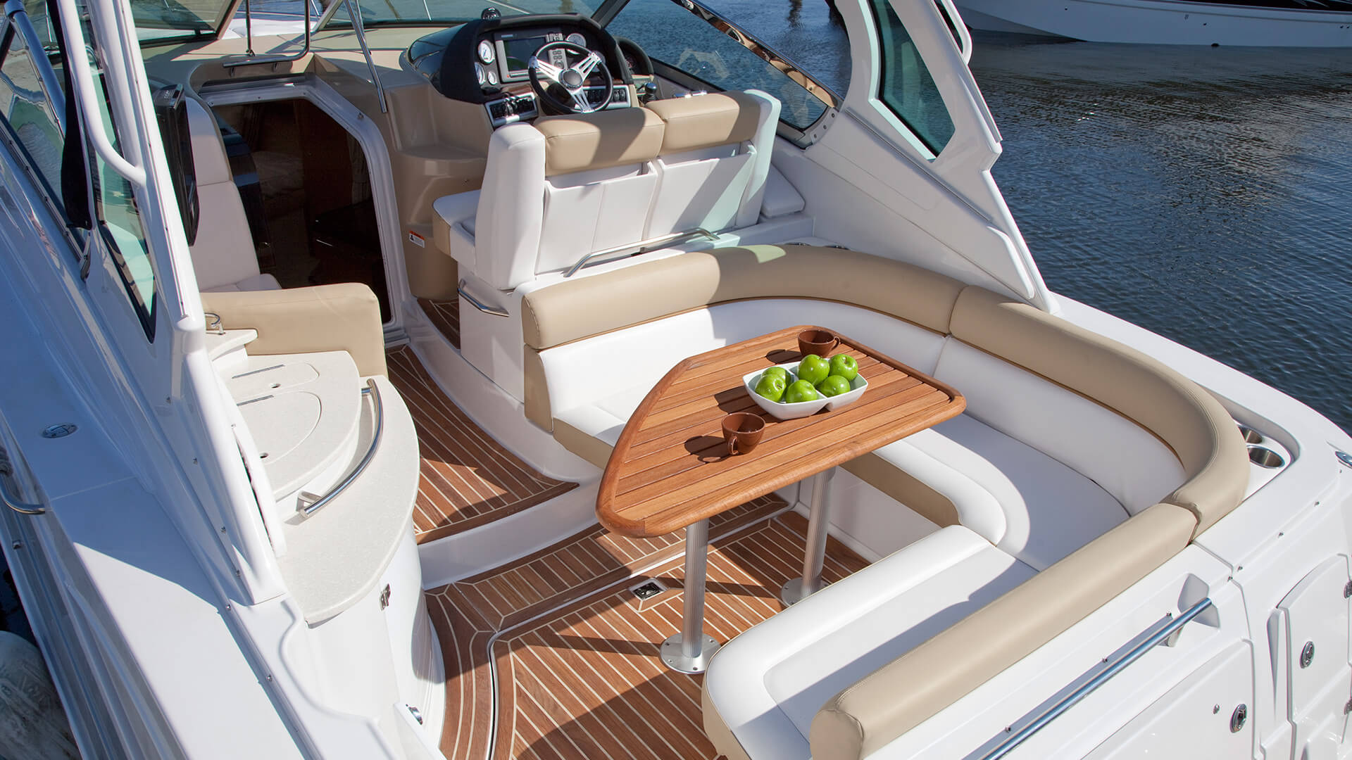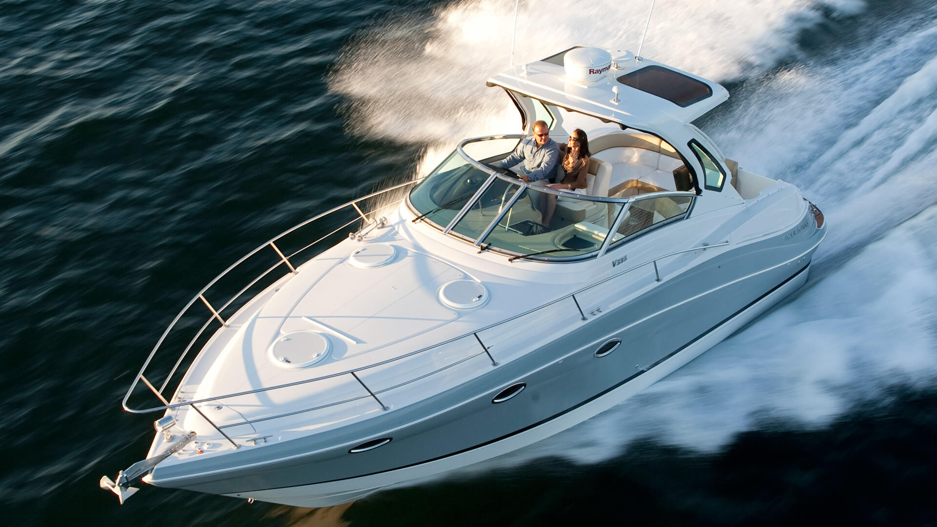 You'll be captivated by the Vista 335 cruiser. It's a 33-foot vision of understated elegance, from the smartly-designed cabin accommodations flanked by rich wood cabinetry to the well-appointed galley. Consider an optional private stateroom with flat-screen TV.