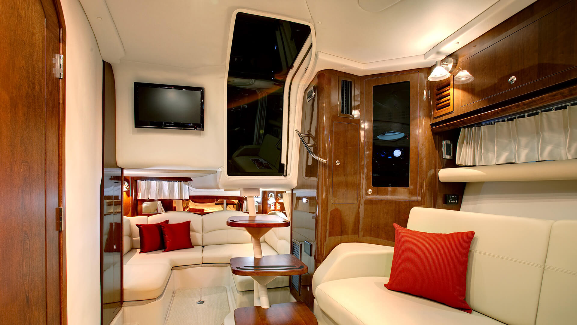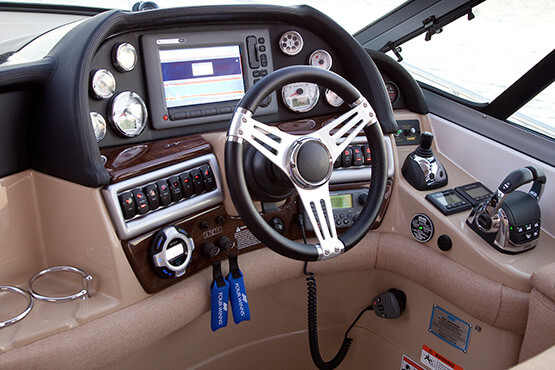 An express cruiser that pays tribute to your taste - and largesse. The 37-foot Vista 375 graciously welcomes your guests, who will appreciate air conditioning/heating, a flat-screen TV and premium sound system. The exceptional galley makes shipside cooking a pleasure.